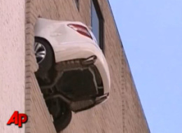 Worst Parker Ever? Car Dangles Outside Parking Garage (VIDEO)